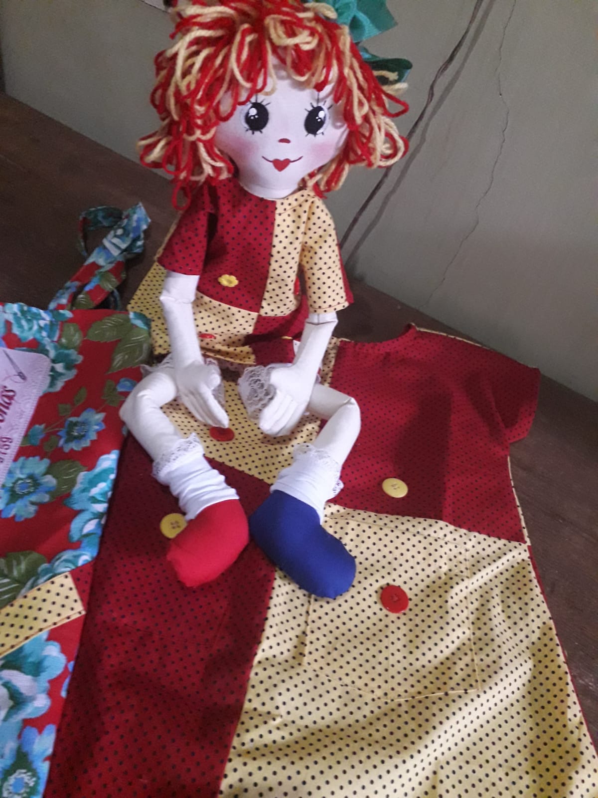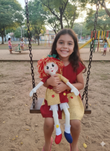 Kit tal menina tal boneca, vestido infantil confeccionado em tecido tricoline 100% algodão. A boneca confeccionada em algodão cru, rostinho desenhado e pintado a mão. Roupinhas em tricoline 100% algodão, cabelo em lã molet, enchimento em fibra siliconada.